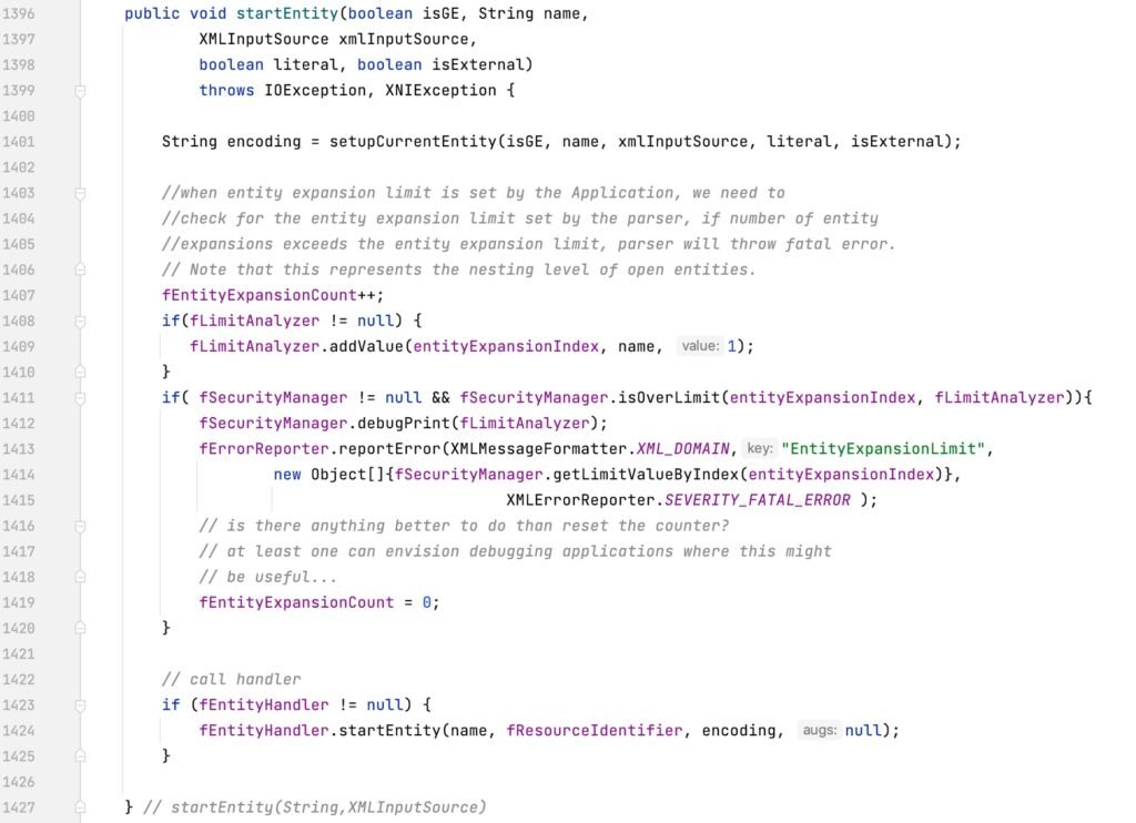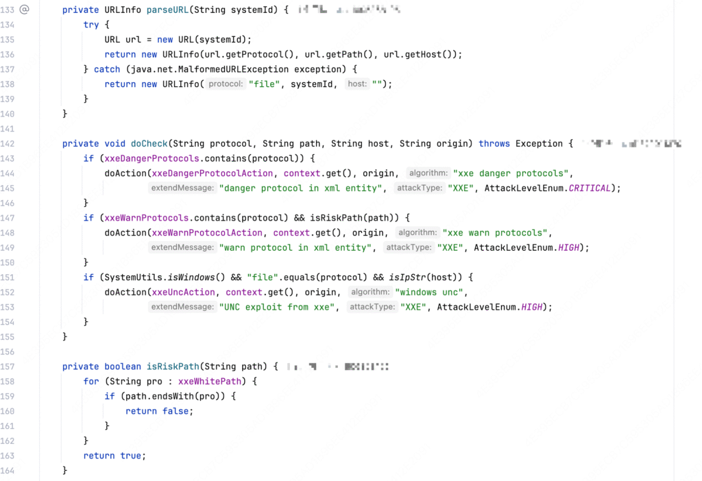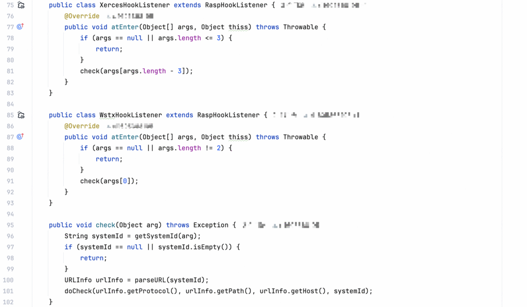 Although there are numerous middleware for XML parsing, it suffices to hook the XML entity parsing section. For instance, both DOM4J and JAXP tools rely on Apache Xerces for XML entity parsing. The relevant hook points are summarized as follows:
