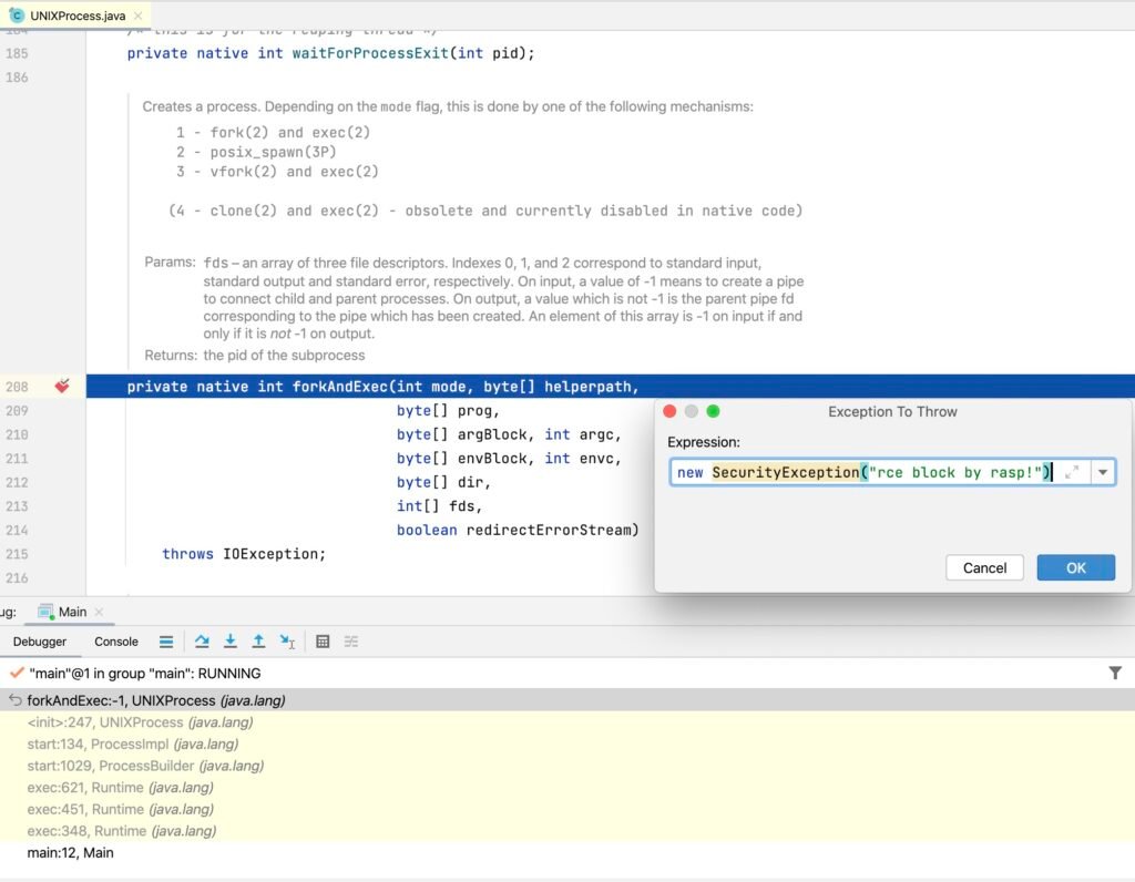 Exception in thread "main" java.lang.SecurityException: rce block by rasp!